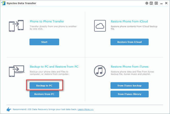 After backup completed, back to the homepage of Syncios. Simply connect your Motorola device, then click Restore from PC.