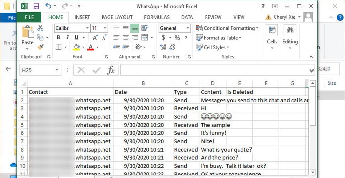 As above, we summarized 2 methods to export WhatsApp messages to Excel. The fastest way is to use Syncios WhatsApp Transfer to directly export a CSV file, or send WhatsApp chat through Email and then import the file to Excel.