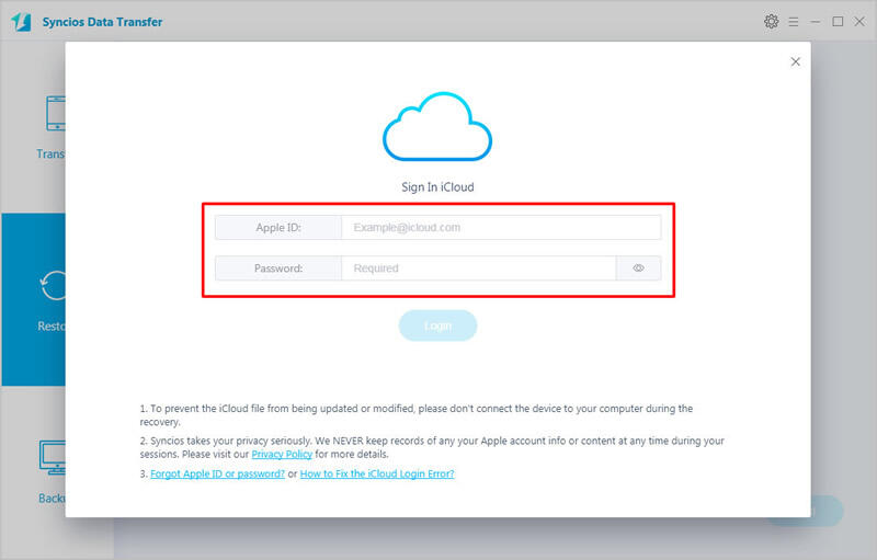 Attention: Syncios Team takes your privacy seriously. We NEVER records of any your Apple account info or content at any time during session.