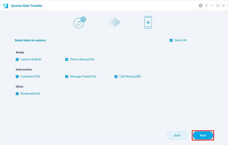 Step 3: Select your desired contents and click 'Next' to launch the transferring process.