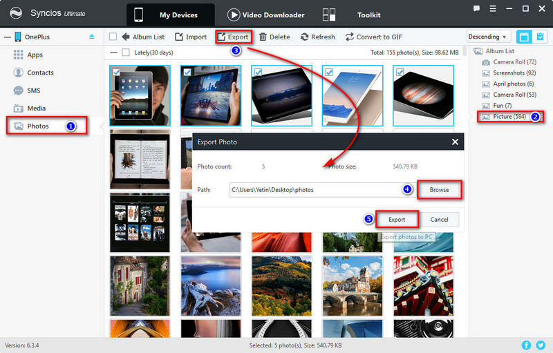 Tips. Some people may be tired of picking up photos one by one. Then want some lazy method. In fact, you are able to export and import a photo album at one time. Go back to Album list, choose a photo album on OnePlus 13 and click on Export to save a photo album to computer at once. Or click on Add > Add Folder to import a photo folder from computer to OnePlus 13 at once.
