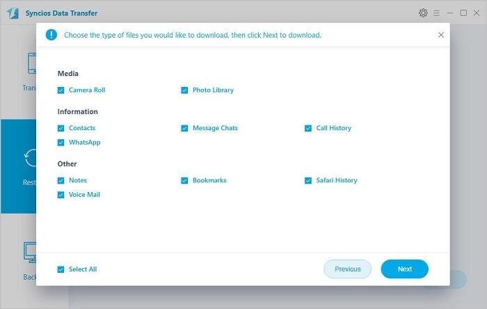 If you’ve backed up your iOS devices with iCloud before, Syncios Data Transfer can also help you to retrieve those contents.