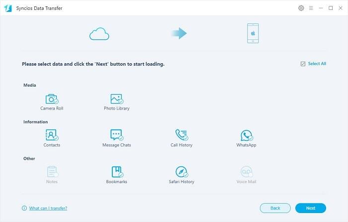 You need to choose contents you need then click Next to load data. Afterwards, check if your phone connected well then start the transfer by tapping Next again. All files you select will be restored from the iCloud backup to your iOS 18 device without overwriting the existing files.