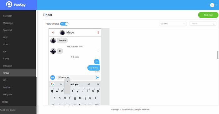 Tinder is a new style for someone who want to meet new people. We met people or knew each in traditional ways in the past, like holding a party, hanging out with friends, etc. And now, you can use this up-to-date app to discover new people who has the same interests with you. But here comes some problems, what if you met some bad guy on this App, or what if your couple cheating on you because they know someone new? With the help of Tinder tracking apps, you won't worry about these any more. You can track your kids or your couple's Tinder at anytime and anywhere you want.